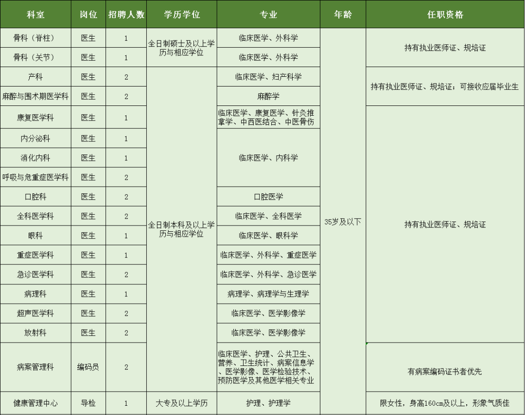醫(yī)生崗位全年可接收簡歷;