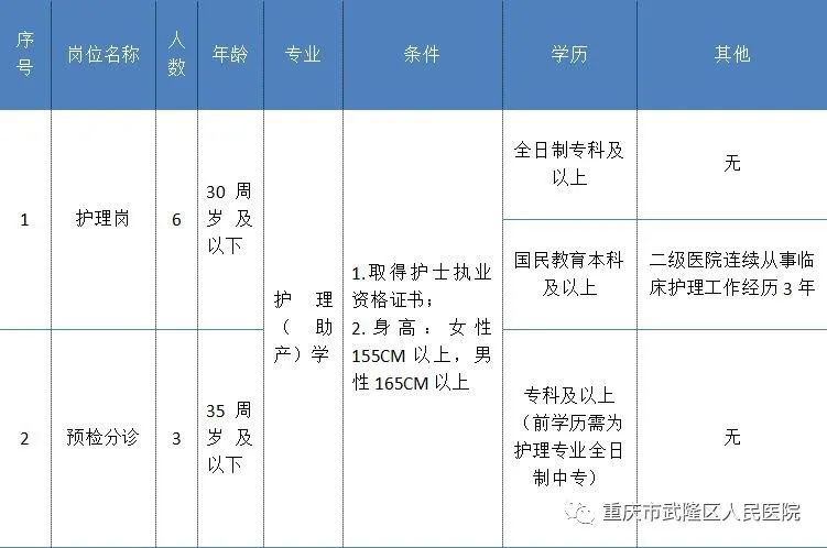 重慶市武隆區(qū)人民醫(yī)院招聘編制外臨床護士、預檢分診護士9名