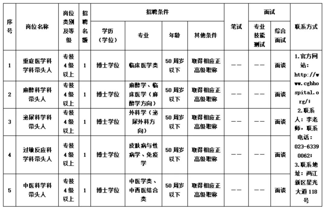 淡薄寧靜無怨無悔,以救死扶傷為己任,用真心,愛心,同情心呵護每一位患者。這是每一位醫(yī)療工作者的心聲和使命,以上醫(yī)學(xué)教育網(wǎng)發(fā)布的公告“重慶市人民醫(yī)院2022年重慶英才大會招聘緊缺高層次人才24名”,希望能夠幫助您找到合適的崗位,早日發(fā)揮自己的力量!
