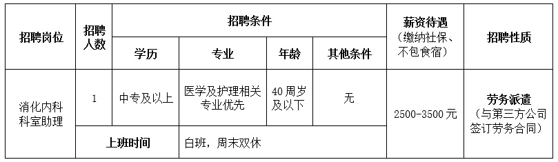 重慶市江津區(qū)中心醫(yī)院招聘消化內(nèi)科科室助理1名