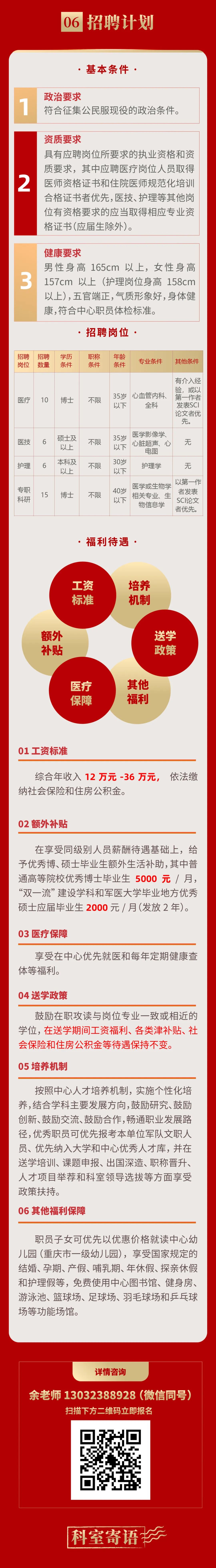 醫(yī)學(xué)教育網(wǎng)醫(yī)療衛(wèi)生招聘欄目每天都會(huì)更新全國(guó)各地新鮮招聘公告信息,致力于為廣大即將進(jìn)入醫(yī)療衛(wèi)生系統(tǒng)/醫(yī)院/醫(yī)療事業(yè)單位的工作人員進(jìn)行服務(wù),以上就是醫(yī)學(xué)教育網(wǎng)小編為大家整理的:重慶市渝中區(qū)陸軍軍醫(yī)大學(xué)陸軍特色醫(yī)學(xué)中心招聘心血管內(nèi)科人才37人,希望能夠幫助到大家。