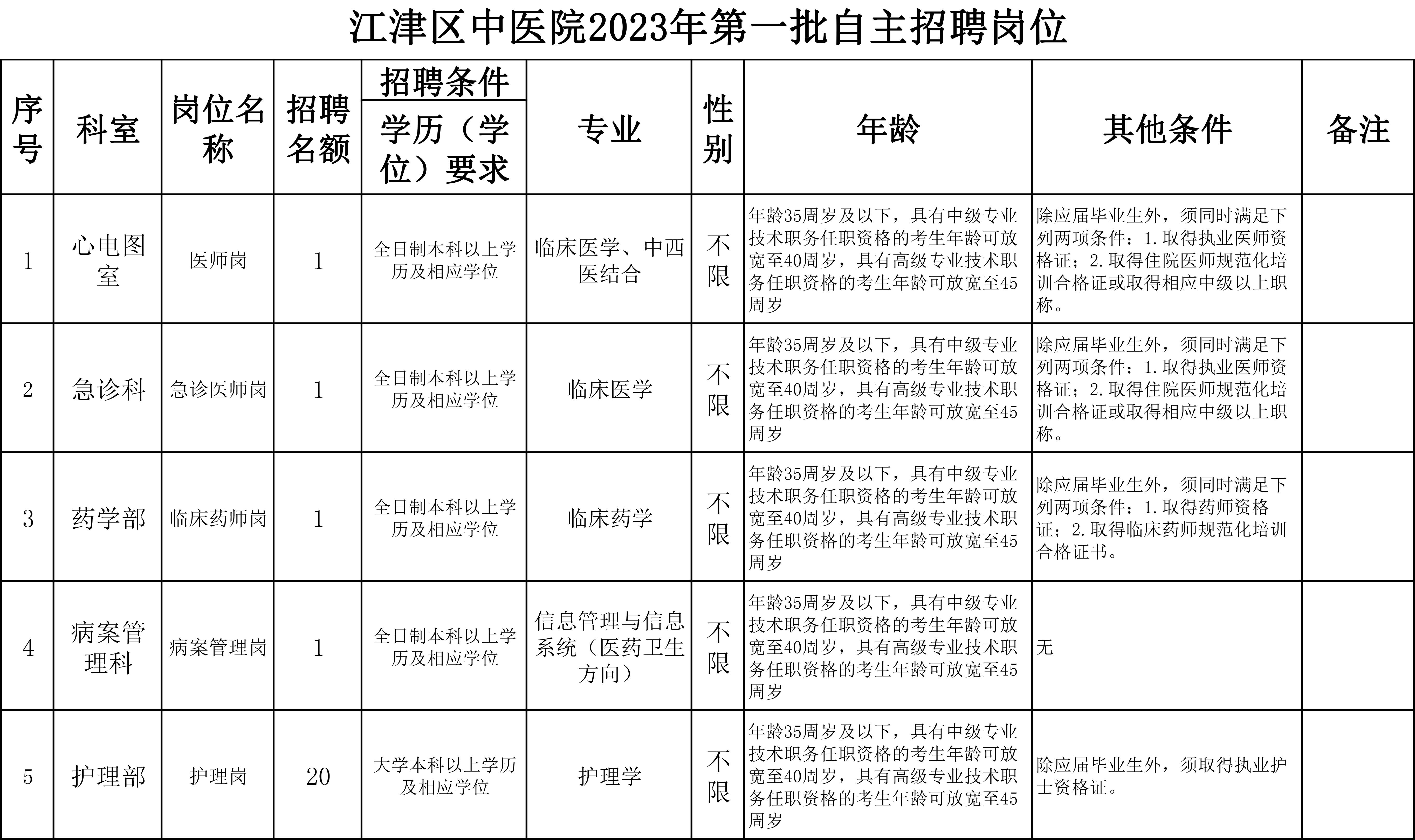 重慶市江津區(qū)中醫(yī)院2023年1月招聘非在編工作人員24名