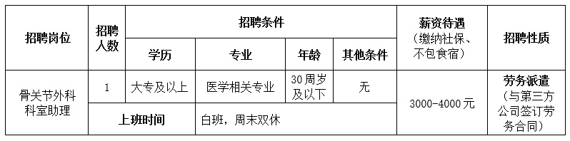 重慶大學(xué)附屬江津醫(yī)院招聘骨關(guān)節(jié)外科科室助理1名