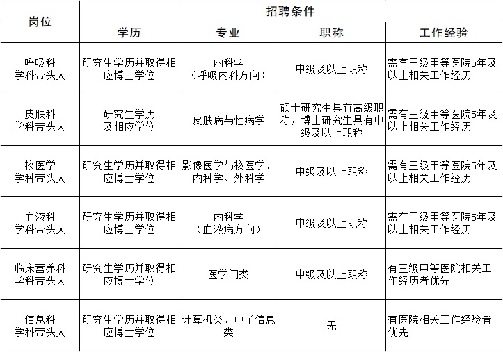 應(yīng)聘人員應(yīng)具有堅定的政治立場、高尚的醫(yī)德醫(yī)風(fēng),良好的身體素質(zhì),年齡在45周歲及以下,并符合下列條件: