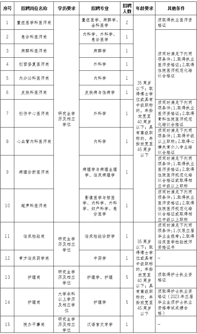 重慶大學(xué)附屬江津醫(yī)院2023年招聘醫(yī)學(xué)人才86人
