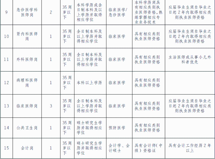為了進(jìn)一步滿足醫(yī)院學(xué)科建設(shè)、人才隊(duì)伍建設(shè)及業(yè)務(wù)發(fā)展需要,面向社會(huì)公開(kāi)招聘衛(wèi)生專業(yè)技術(shù)人員,具體崗位及條件如下: