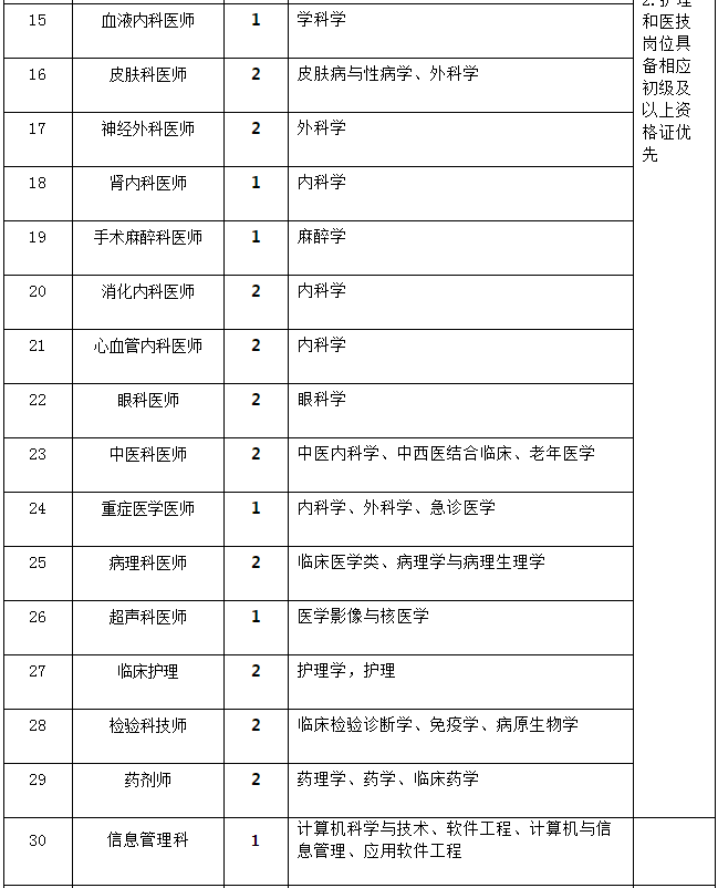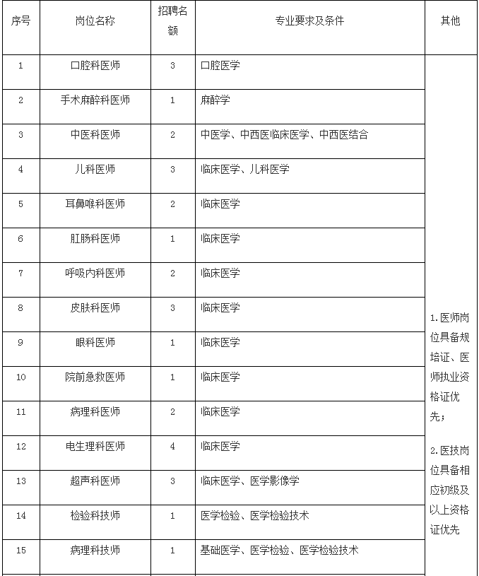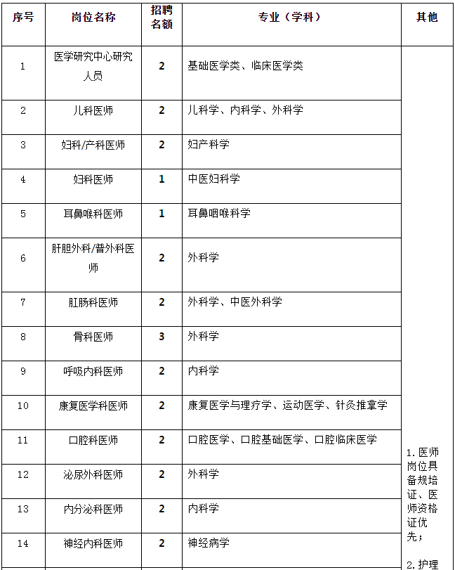 引進(jìn)計(jì)劃:臨床醫(yī)學(xué)類專業(yè)畢業(yè),名額不限。
