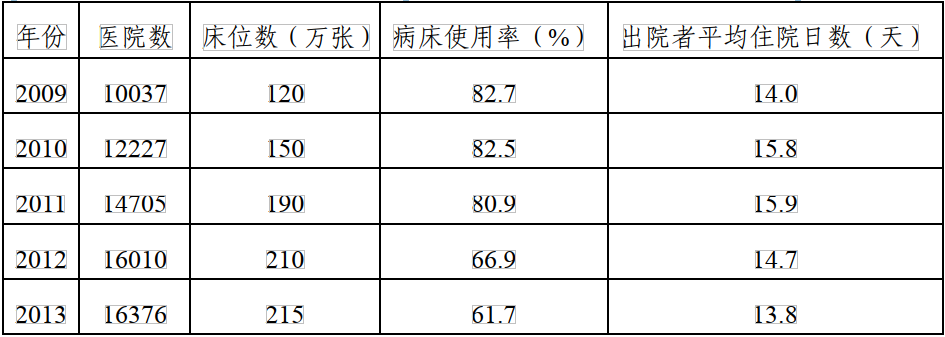 2009~2013年某地區(qū)醫(yī)院病床使用相關(guān)情況統(tǒng)計(jì)表