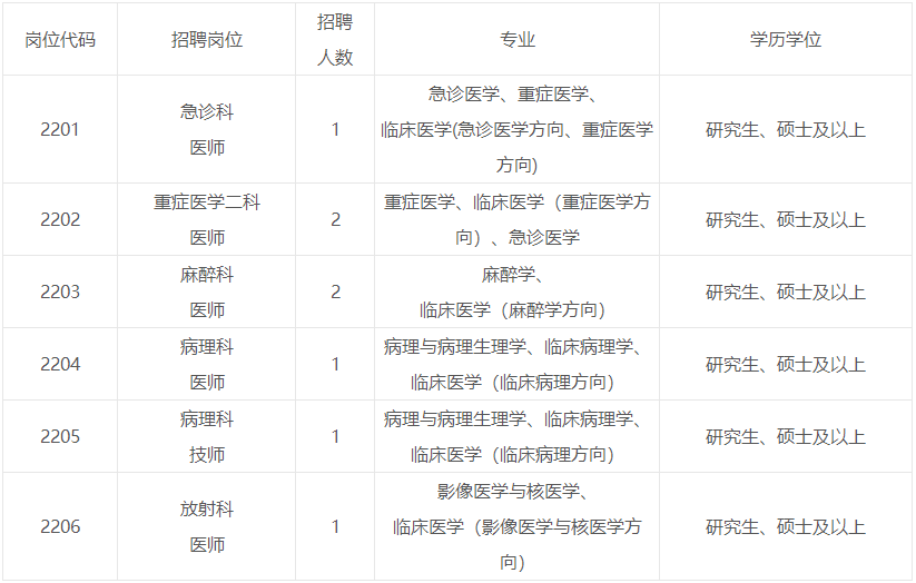 3.除代碼2205崗位外,非2022屆畢業(yè)生須須具有醫(yī)師規(guī)范化培訓(xùn)經(jīng)歷,并持有醫(yī)師執(zhí)業(yè)資格證書(shū)或?qū)I(yè)技術(shù)任職資格證書(shū);