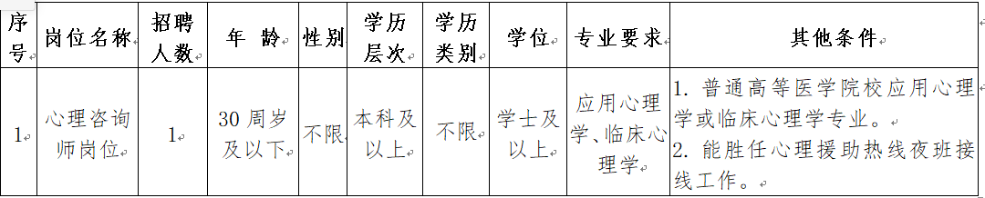 福建省福州神經(jīng)精神病防治院招聘編外心理咨詢師1名