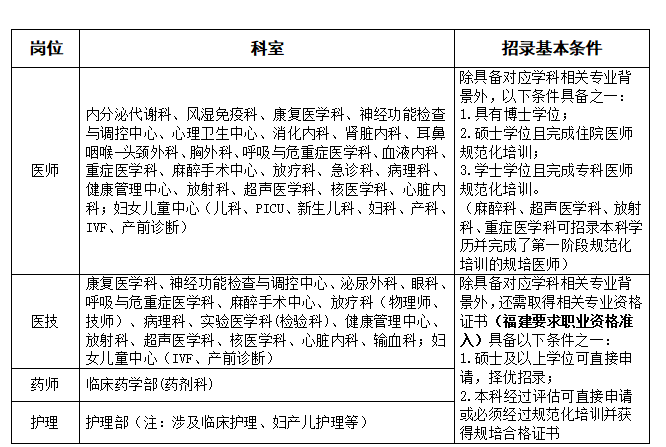 ①涉及華西醫(yī)院科室的醫(yī)師勞動合同由華西廈門醫(yī)院/華西醫(yī)院醫(yī)生集團簽訂,其他崗位勞動合同由華西廈門醫(yī)院簽訂。