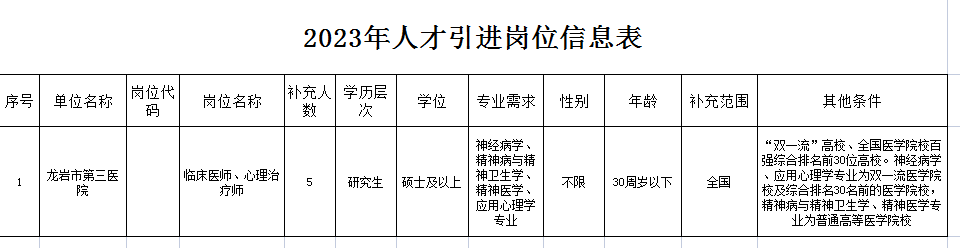 龍巖市第三醫(yī)院2023年招聘編內(nèi)專業(yè)技術人員9名