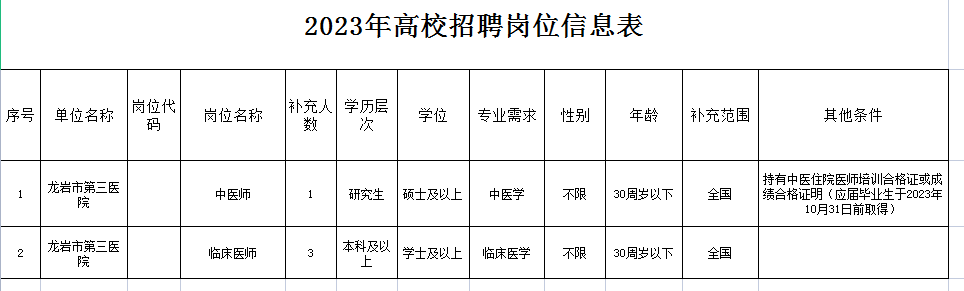 招聘信息在“龍巖衛(wèi)生人才網(wǎng)”“龍巖市第三醫(yī)院官網(wǎng)”等網(wǎng)站上公開發(fā)布。