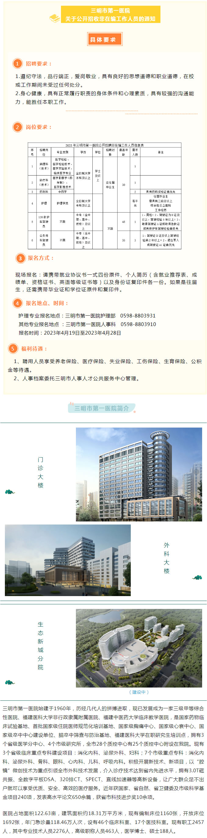 福建省三明市第一醫(yī)院2023年4月招聘非在編工作人員9人