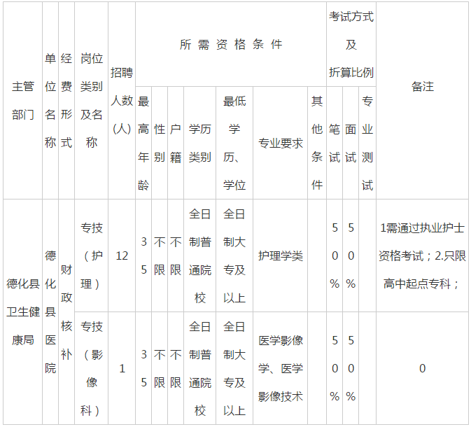 詳見《德化縣醫(yī)院2019年秋季公開招聘編制外工作人員崗位信息》