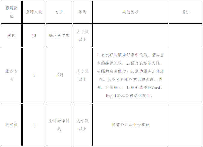 擬招聘10名醫(yī)助、1名服務專員、1名收費員,在惠安縣醫(yī)院工作。