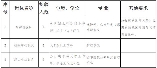 現(xiàn)因工作需要,招聘以下崗位: