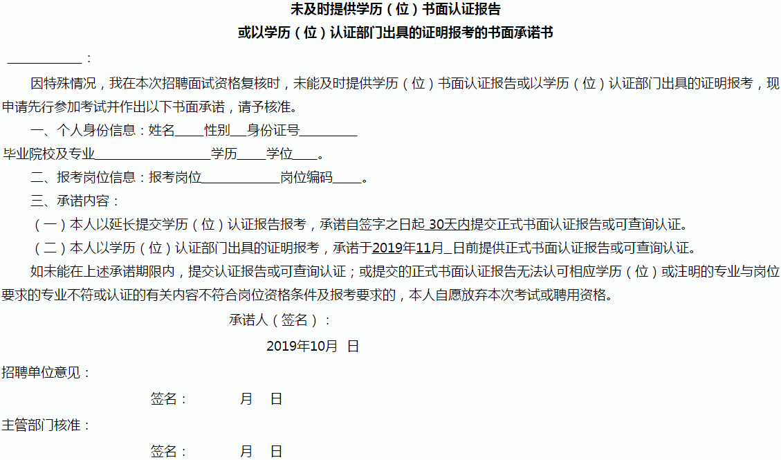 2.未及時(shí)提供學(xué)歷(位)書面認(rèn)證報(bào)告或以學(xué)歷(位)認(rèn)證部門出具的證明報(bào)考的書面承諾書