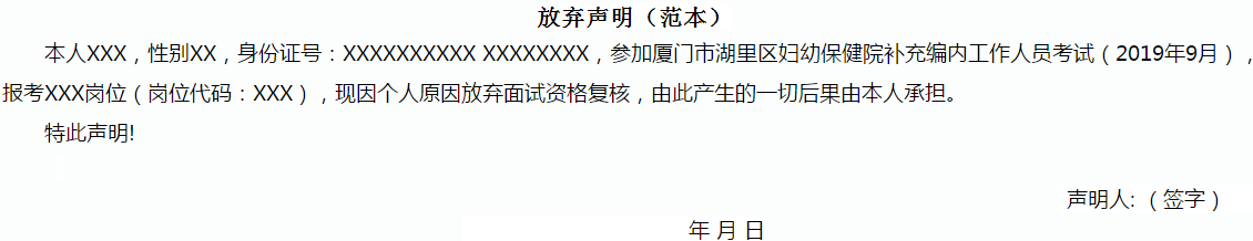 3.因個(gè)人原因放棄面試資格復(fù)核的請?zhí)峤粫娣艞壜暶?。(格式見附?)