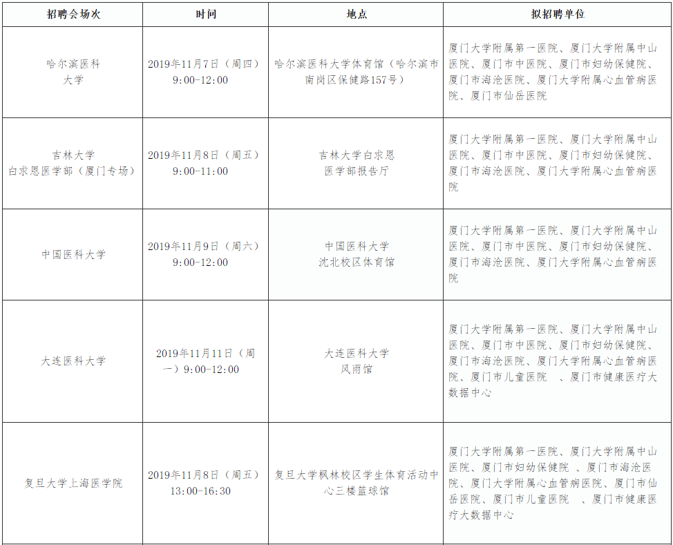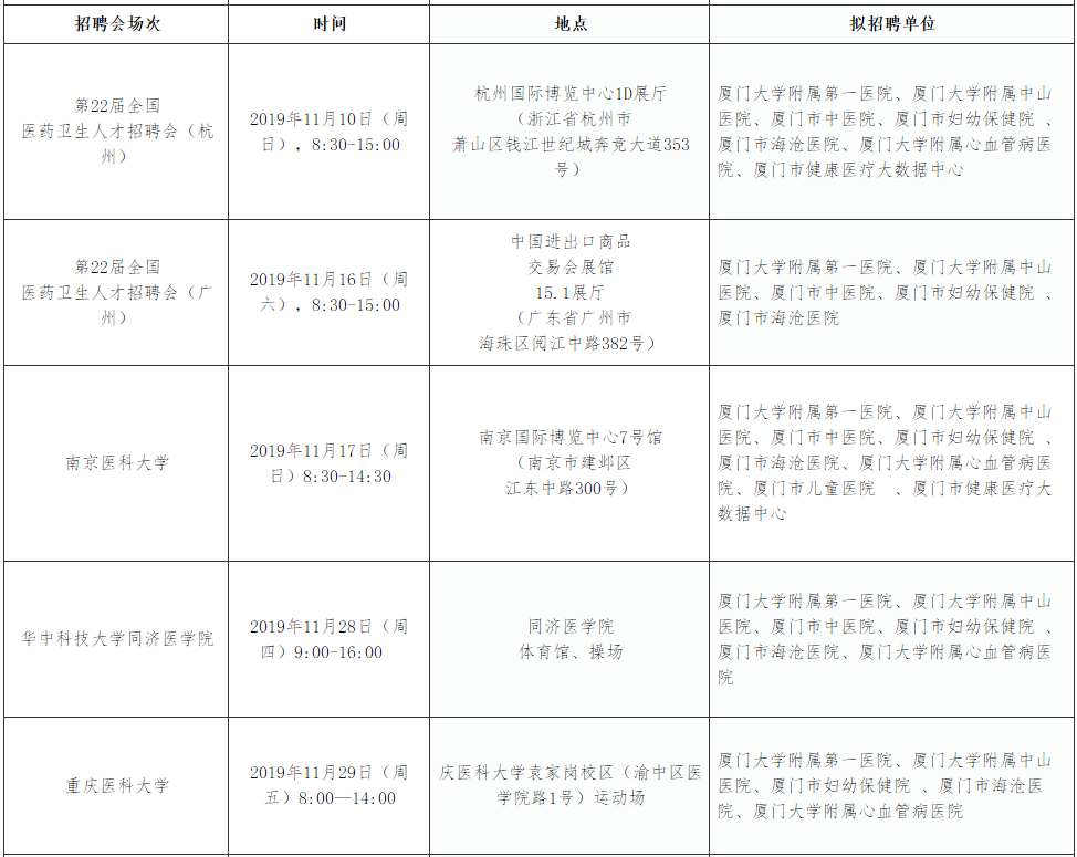 1.廈門市衛(wèi)生健康委員會(huì)所屬事業(yè)單位公開招聘編制內(nèi)醫(yī)學(xué)高層次和急需緊缺人才崗位信息表(2019年11月)