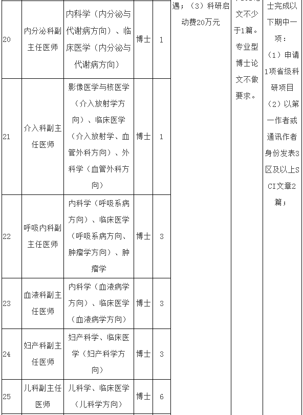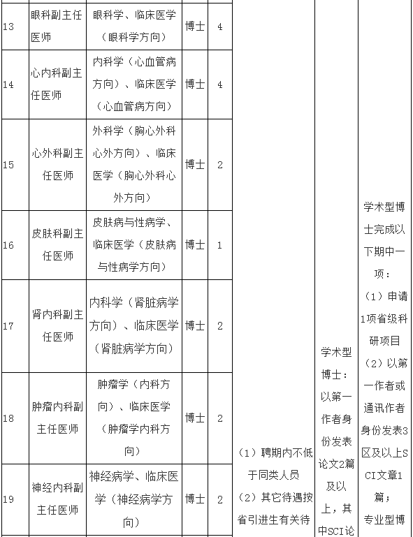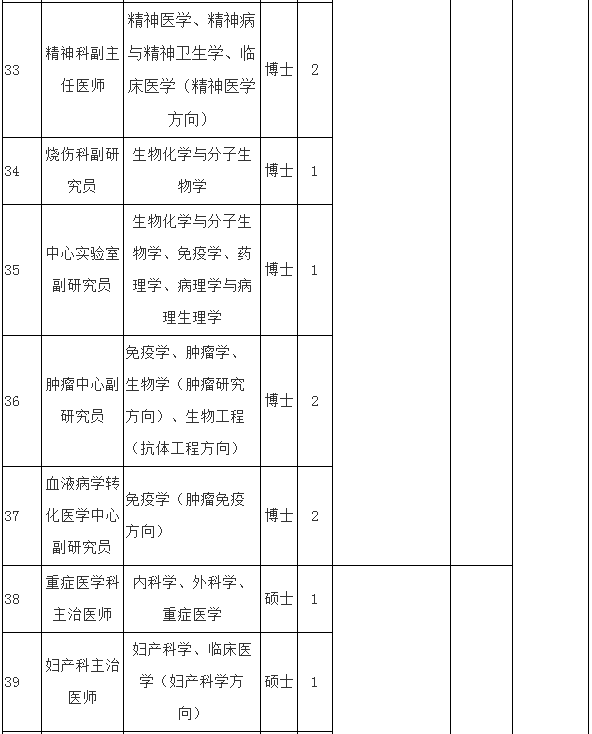 福建醫(yī)科大學(xué)附屬協(xié)和醫(yī)院創(chuàng)建于1860年,是一所集醫(yī)療、教學(xué)和科研為一體的省級綜合性三甲醫(yī)院,現(xiàn)有三個院區(qū),編制床位4800張。醫(yī)院技術(shù)力量雄厚,擁有6個“國家臨床重點???rdquo;建設(shè)項目、13個“福建省臨床重點???rdquo;建設(shè)項目,躋身“全國醫(yī)院綜合實力百強榜”。為福建省的醫(yī)療衛(wèi)生事業(yè)發(fā)展做出了重要貢獻,我院根據(jù)我省第三屆“人才福建周”活動醫(yī)療衛(wèi)生團組工作方案,擬引進95名,具體如下: