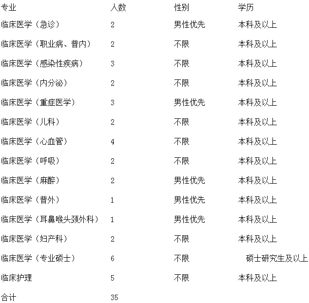 甘肅省金昌市中心醫(yī)院招聘臨床醫(yī)學(xué)專業(yè)技術(shù)人才招聘專業(yè)及人數(shù)!具體內(nèi)容如下,希望能夠幫助到您!
