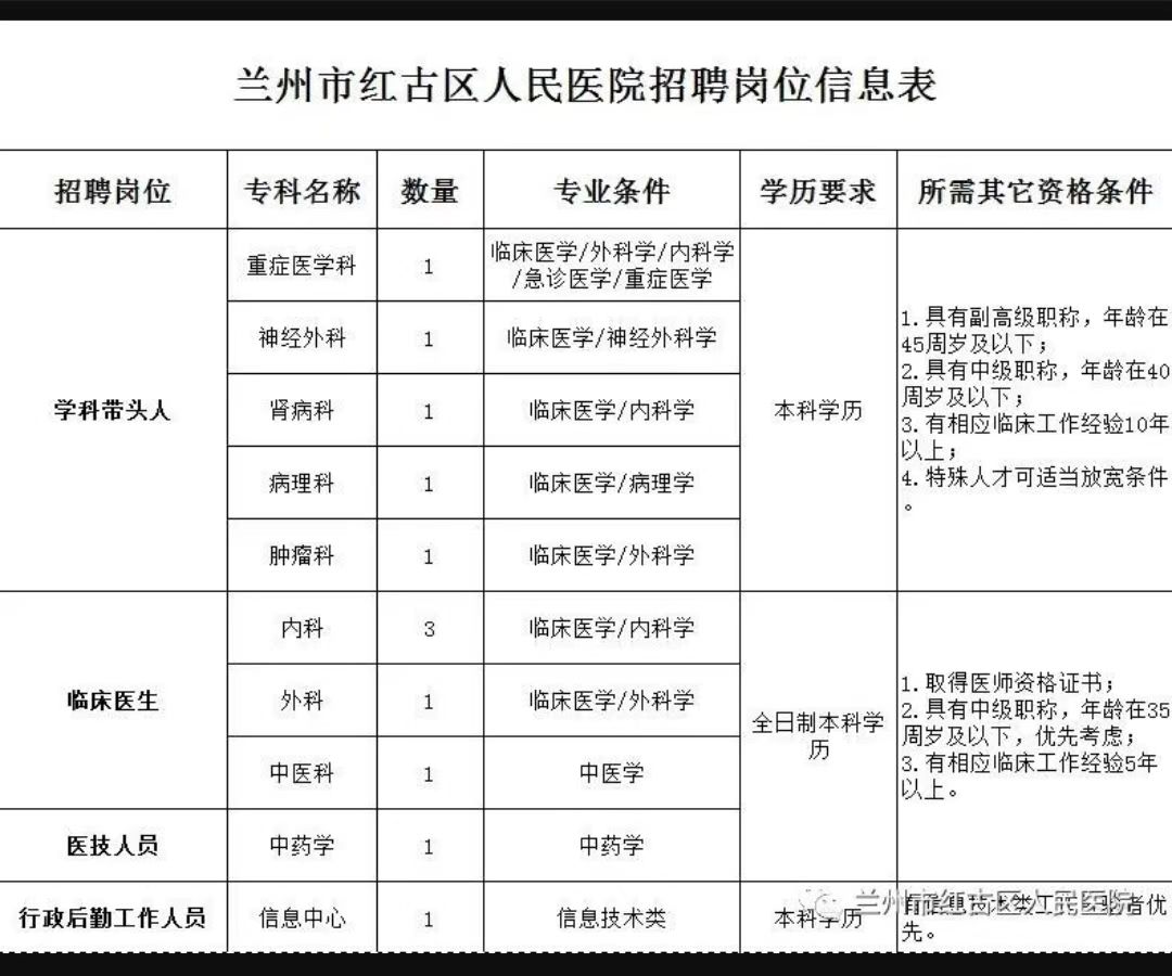 甘肅省蘭州市紅古區(qū)人民醫(yī)院招聘醫(yī)學專業(yè)技術人員后勤工作人員12名