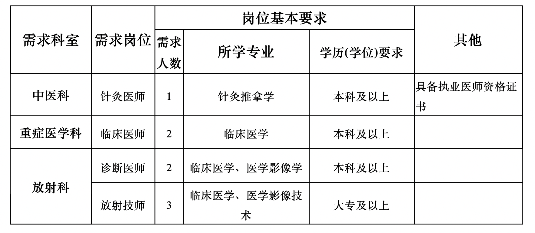 本科及以上學(xué)歷,第一學(xué)歷為普通高等教育學(xué)校全日制本科(專升本及獨(dú)立院校除外)院校,獲得相應(yīng)學(xué)位,具備醫(yī)師資格證書,應(yīng)屆畢業(yè)生不要求醫(yī)師資格證書,年齡在35歲以下(1987年1月1日以后出生)。