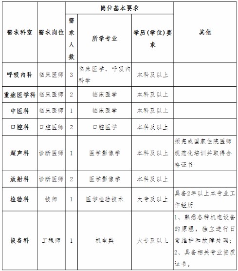 2、本科學(xué)歷,第一學(xué)歷為普通高等教育學(xué)校全日制本科(專升本及獨(dú)立院校除外)院校,獲得相應(yīng)學(xué)位,具備醫(yī)師資格證書,2022屆應(yīng)屆生不要求資格證書,年齡在30歲以下(1993年1月1日以后出生)。