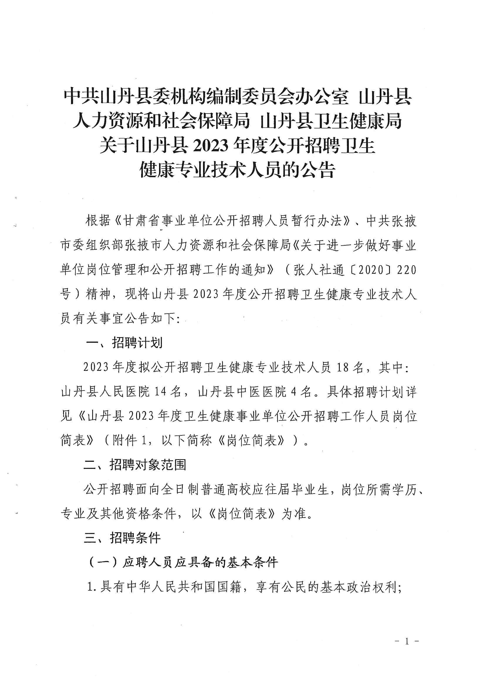 甘肅省張掖市山丹縣2023年招聘衛(wèi)生健康專(zhuān)業(yè)技術(shù)人員18人