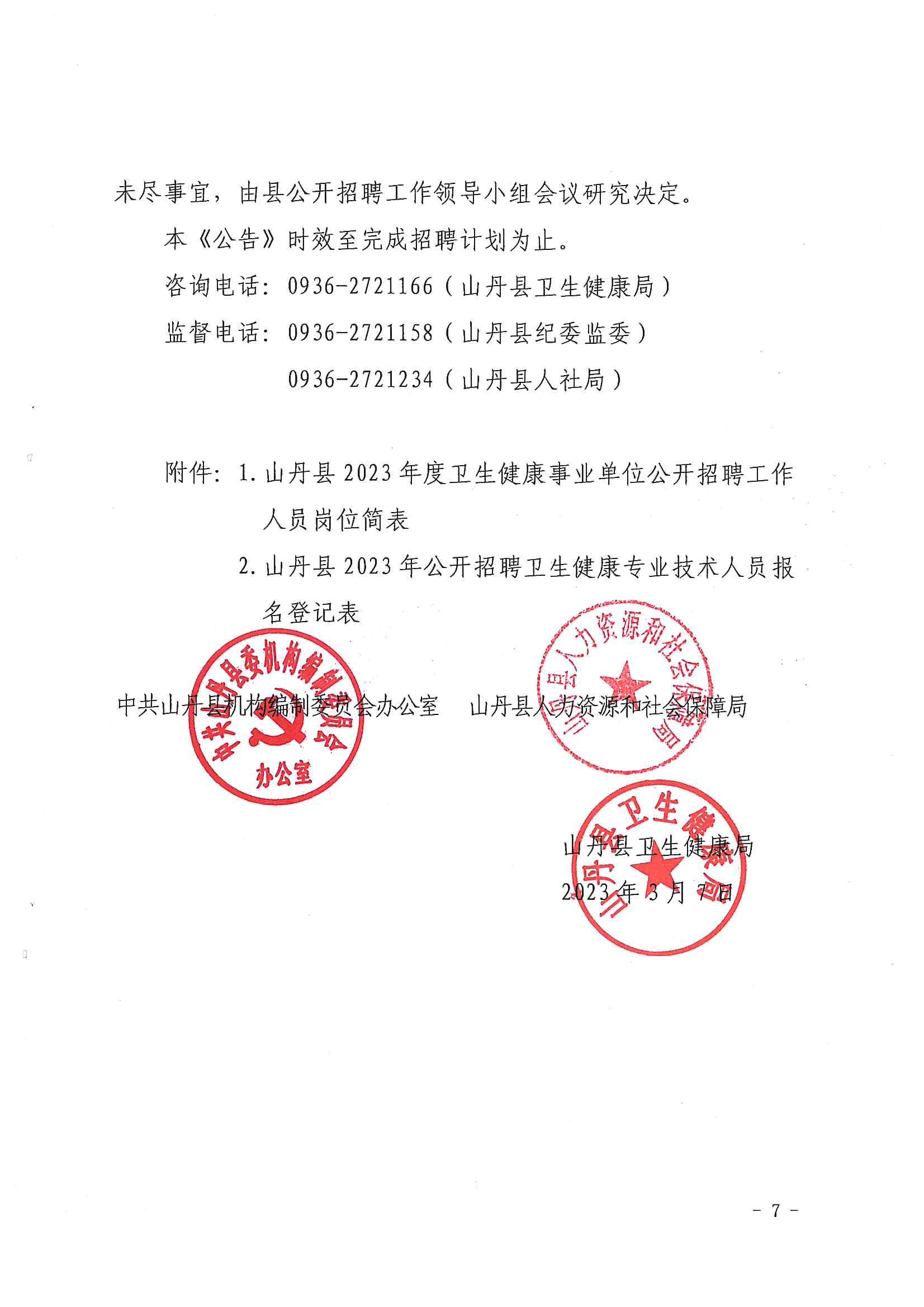 附件1:山丹縣2023年度衛(wèi)生健康事業(yè)單位公開(kāi)招聘工作人員崗位簡(jiǎn)表
