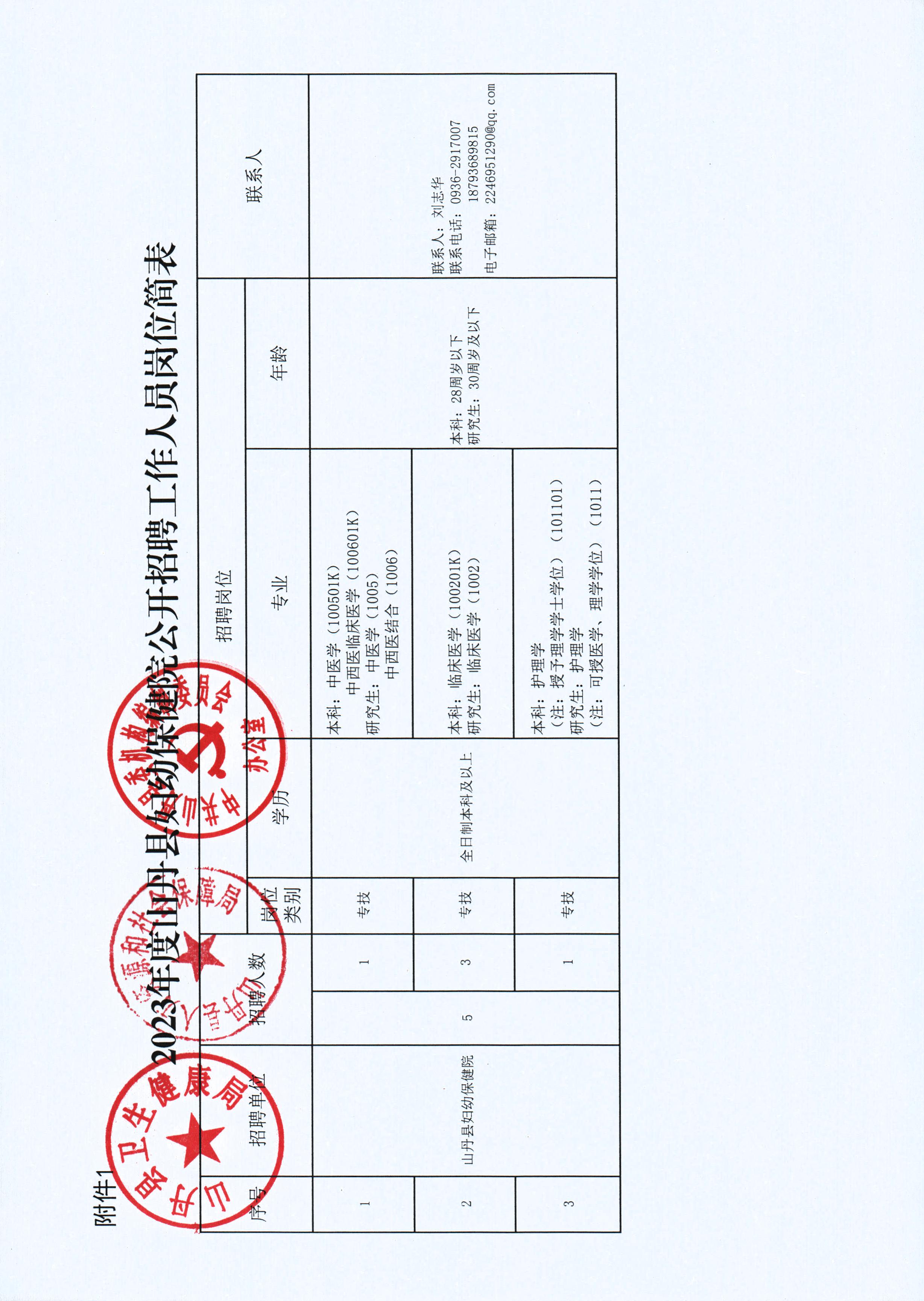 附件1:2023年度山丹縣婦幼保健院公開招聘工作人員崗位簡(jiǎn)表