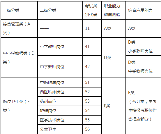 綜合、教育、衛(wèi)生類《職業(yè)能力傾向測(cè)驗(yàn)》和《綜合應(yīng)用能力》滿分均為150分,筆試總分300分,按筆試成績(jī)百分制的60%計(jì)入招聘總成績(jī)。衛(wèi)生類綜合應(yīng)用能力為合訂本,由考生按報(bào)考職位作答相應(yīng)部分。