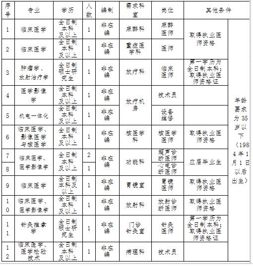 2019年度計(jì)劃公開招聘13類專業(yè)20名非在編專業(yè)技術(shù)人員,具體如下: