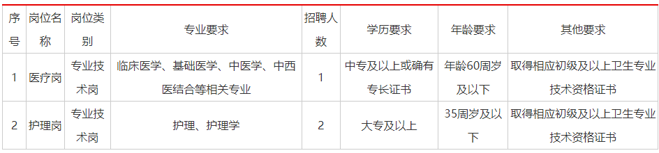 計劃招聘醫(yī)療崗、護(hù)理崗共3人,具體崗位條件如下: