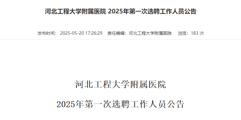 2025河北工程大學附屬醫(yī)院第一次選聘30人公告