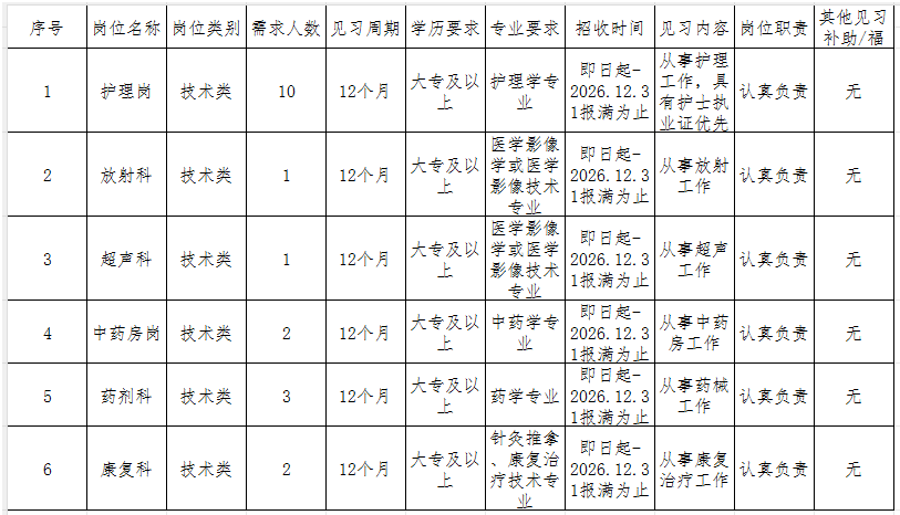 樂(lè)安縣總醫(yī)院中醫(yī)院分院見(jiàn)習(xí)崗位統(tǒng)一招聘崗位表