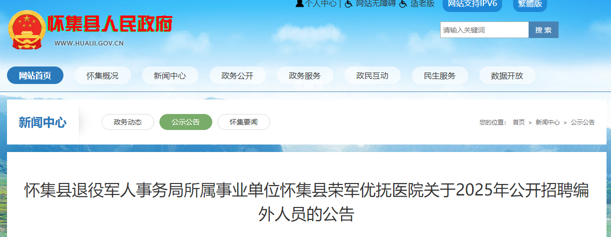 懷集縣退役軍人事務(wù)局所屬事業(yè)單位懷集縣榮軍優(yōu)撫醫(yī)院關(guān)于2025年公開(kāi)招聘編外人員的公告