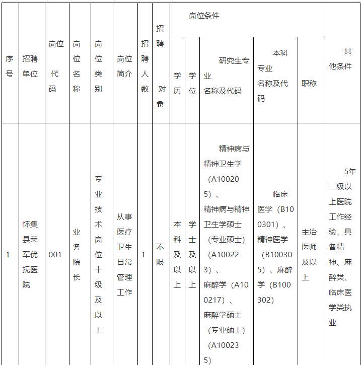 招聘對(duì)象為應(yīng)、往屆普通高校畢業(yè)生及社會(huì)人員。本次招聘崗位1個(gè),招聘人數(shù)1人。具體見(jiàn)附表。