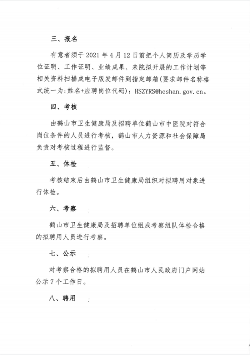 廣東省鶴山市中醫(yī)院(第一期)2021年招聘高級(jí)專業(yè)技術(shù)人才公告