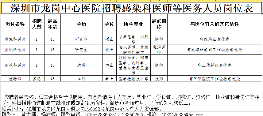 4、地址:深圳市龍崗區(qū)龍崗大道龍崗段6082號龍崗中心醫(yī)院人力資源部。