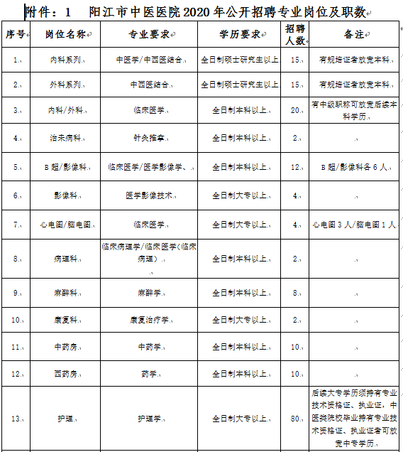 廣東省陽(yáng)江市中醫(yī)醫(yī)院2020年4月份公開(kāi)招聘184名醫(yī)療工作人員崗位計(jì)劃與要求