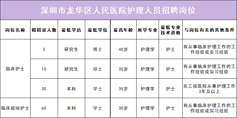 2022年廣東省深圳市龍華區(qū)人民醫(yī)院招聘護(hù)理人員103名