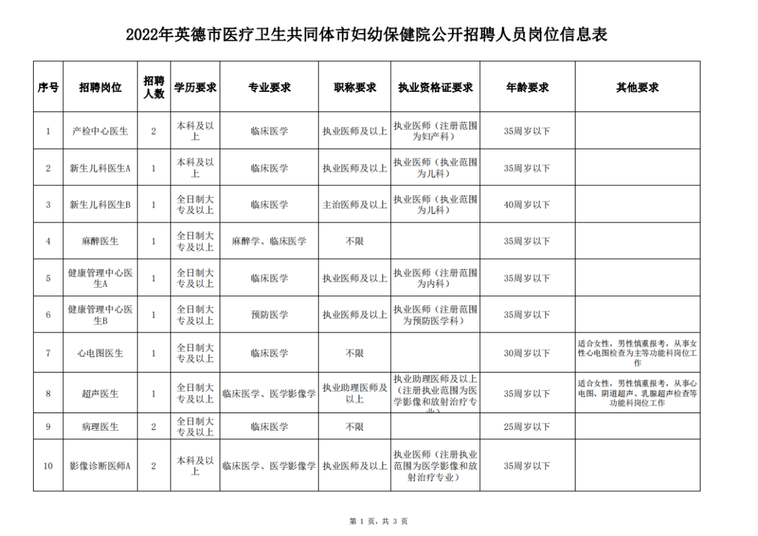 報(bào)名地點(diǎn):英德市婦幼保健院人事科(英德市英城街道利民路8號婦幼職工食堂三樓305)。