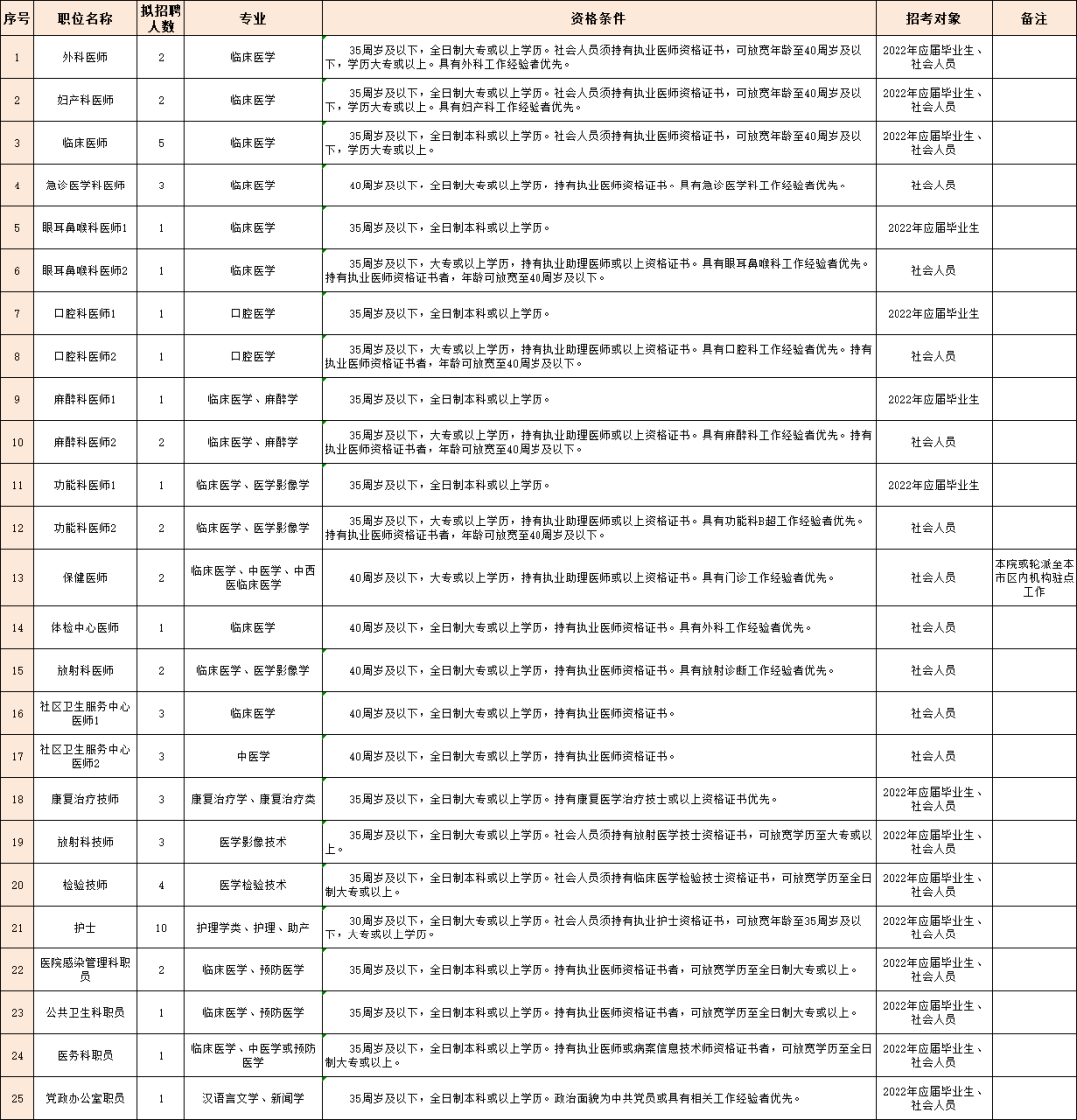 江門市中心醫(yī)院江海分院(江門市江海區(qū)人民醫(yī)院)人才招聘計劃表(2022年第二批):