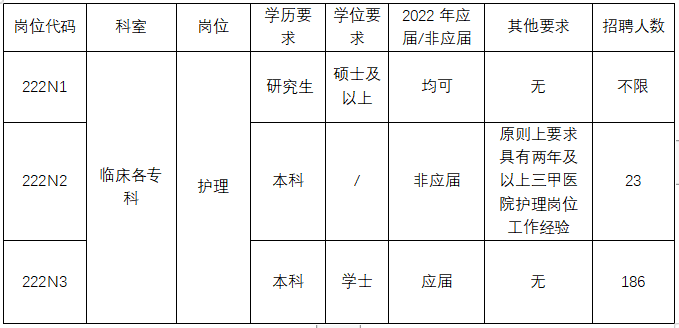 (四)應(yīng)聘護(hù)理崗位要求具備護(hù)士資格證或執(zhí)業(yè)證,碩士學(xué)歷應(yīng)聘者,通過英語六級或有代表性成果的優(yōu)先考慮。