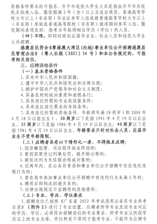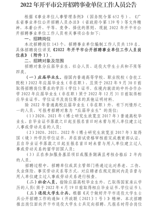 2022年廣東省江門市開平市招聘事業(yè)單位工作人員159名(事業(yè)編)