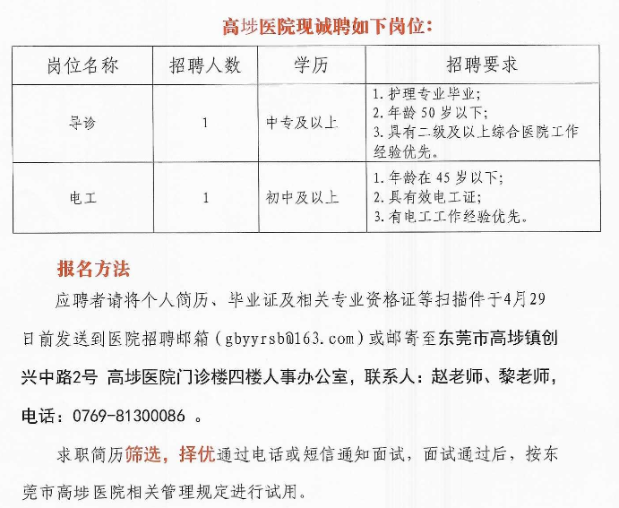 廣東省東莞市高埗醫(yī)院2022年4月招聘工作人員2名