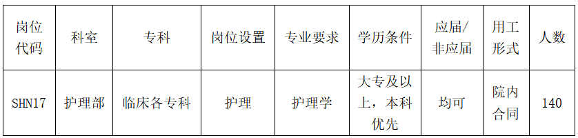 中山大學(xué)孫逸仙紀(jì)念醫(yī)院深汕中心醫(yī)院因工作需要,面向社會公開招聘合同護(hù)理人員140名,現(xiàn)將有關(guān)事項公布如下: