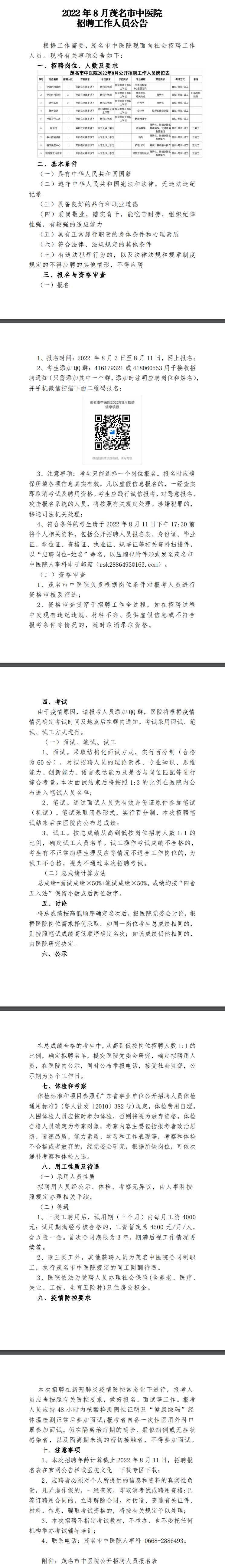 廣東省茂名市中醫(yī)院2022年8月招聘工作人員11人